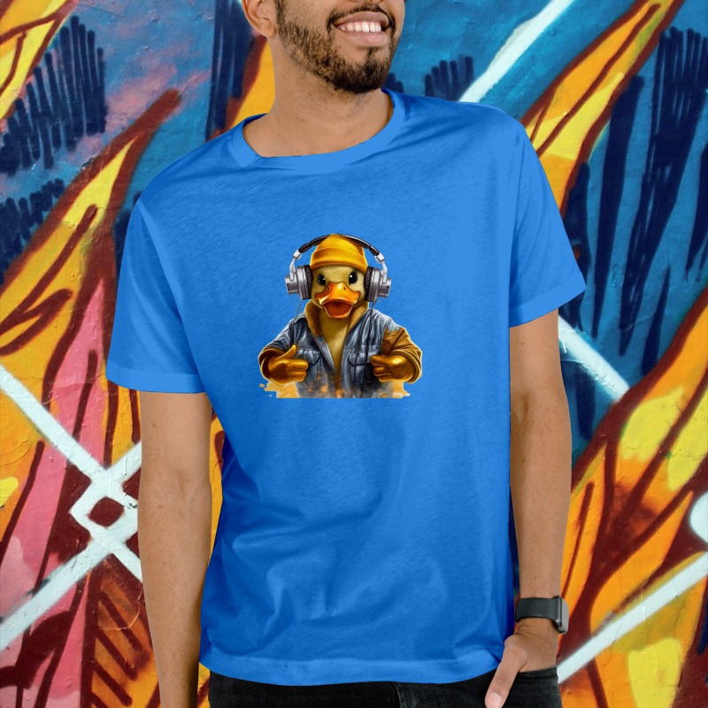 Εντυπωσιακό t-shirt που συνδυάζει στυλ και χαρακτήρα! Το ιδιαίτερο σχέδιο με το παπάκι DJ και ακουστικά δίνει μια φρέσκια και μοντέρνα πινελιά σε κάθε outfit. Ιδανικό για όσους αγαπούν τη μουσική, το streetwear και τα fun graphics που τραβούν τα βλέμματα. Φόρεσέ το και δώσε ρυθμό στο στυλ σου!