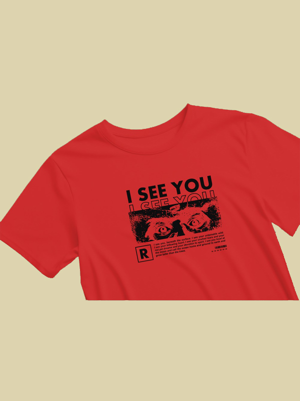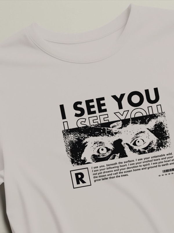 Η απλότητα συναντά το μυστήριο. Αυτό το t-shirt με τύπωμα "I See You" με την κινηματογραφική αισθητική και τη λεπτομέρεια στο βλέμμα είναι σχεδιασμένο για όσους αφήνουν το στυλ τους να μιλάει για αυτούς. Το look σου δεν περνά απαρατήρητο!!